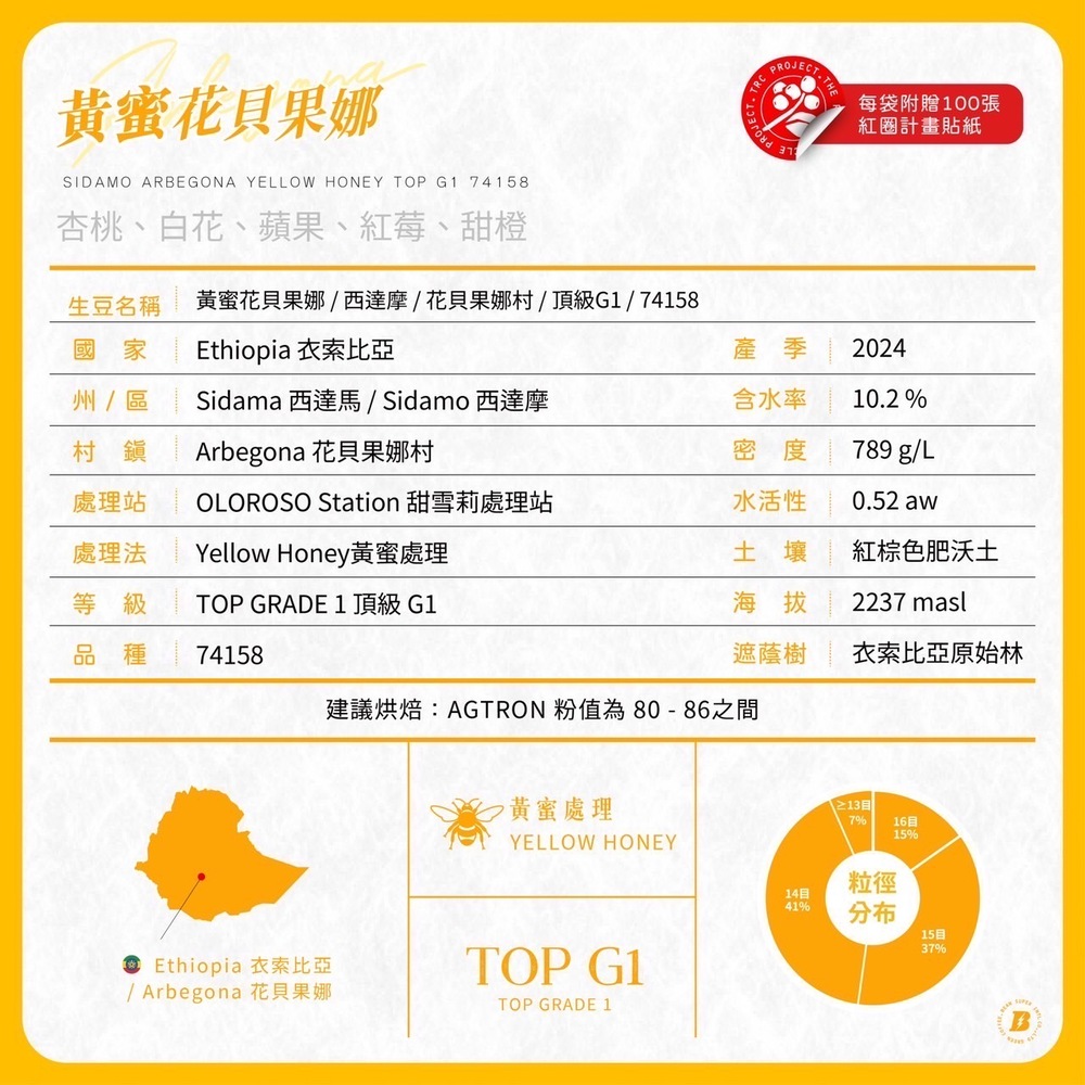 花貝果娜村(Arbegona)位在西達摩區(Sida [1] mo)內的高山地塊,當地豐富的自然資源孕育出了絕佳的咖啡風味,